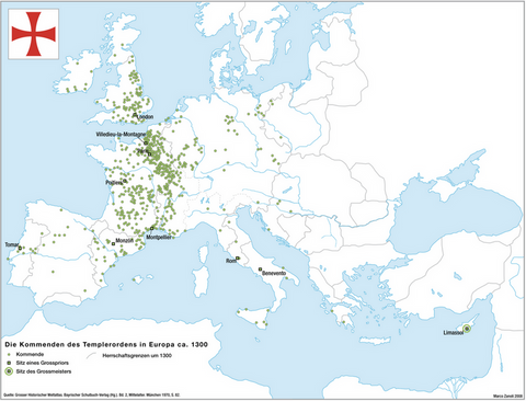 Par essence, on peut citer tous les pays de l'Occident chrétien du Moyen Âge comme terres d'établissement de l'ordre du Temple. Ainsi, il y eut des commanderies templières dans les pays actuels suivants : France, Angleterre, Espagne, Portugal, Écosse, Irlande, Pologne, Hongrie, Allemagne, Italie, Belgique, Pays-Bas. De même, il existait des commanderies en Orient.
