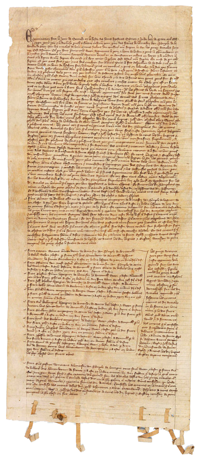 L'original du parchemin de Chinon a été retrouvé en 2002 par l'historienne Barbara Frale aux archives secrètes du Vatican et publié en 2007 avec l'ensemble des documents relatifs au procès.